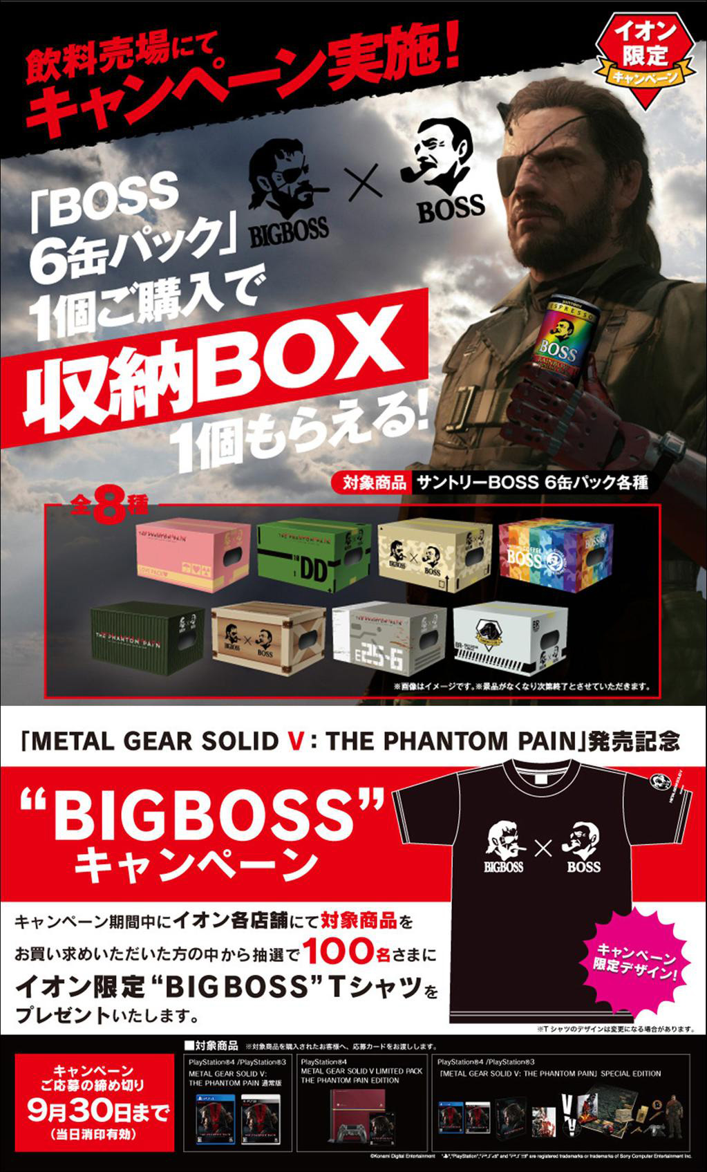 A new collaboration sees Metal Gear team up with… coffee. The brand is called ‘Boss’, the collaboration named ‘Big Boss x Boss’. Sold by Japanese company Suntory, the Boss brand includes canned and bottled coffee and coffee flavored drinks. Well, it does sound like the kind of brand Snake would use.