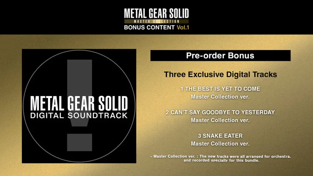 - Metal Gear Solid – Master Collection Version includes VR Missions/Special Missions, Digital Screenplay Book, Digital Master Book