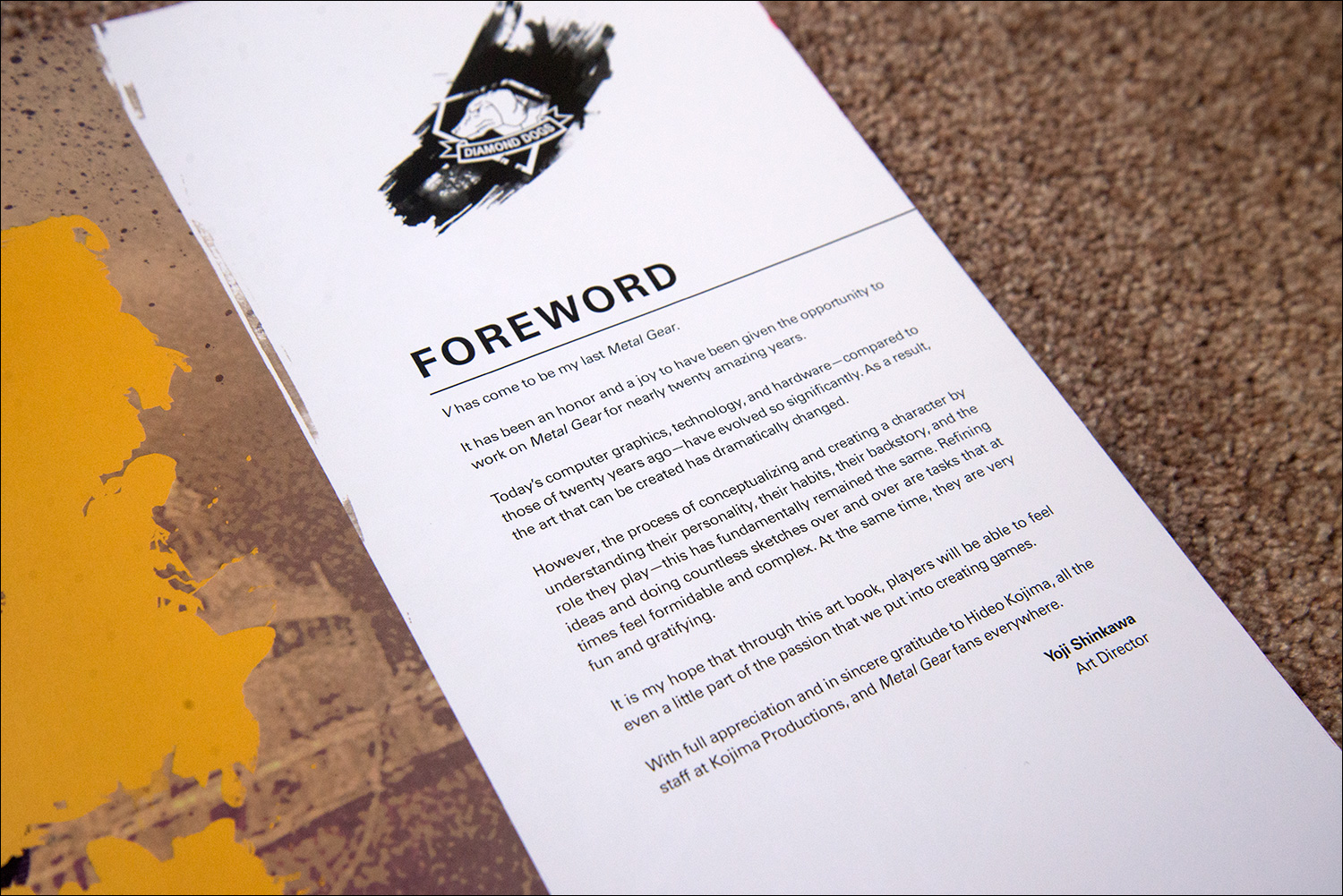 It opens with a foreword by Yoji Shinkawa, who is of course the art director for this game.