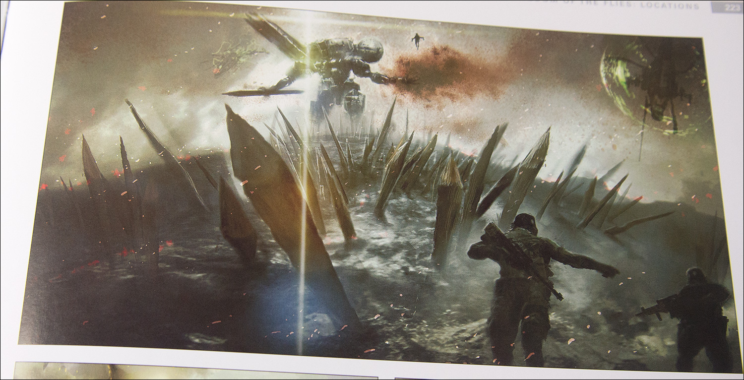 Then there are a few pages with artworks from the scrapped mission 51 (Kingdom of the Flies). We can see some of the environments and concepts for the boss battle against Sahelanthropus.