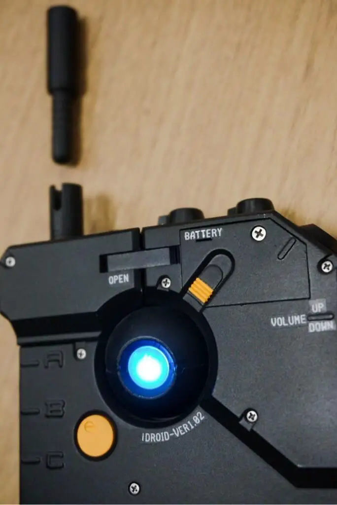 “Sentinel’s iDROID shaped iPhone case. You can move the light (blue sphere).”