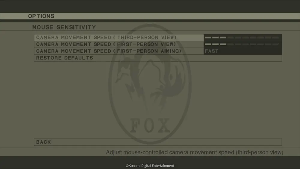 Mouse sensitivity can be adjusted via the Additional Settings menu.
