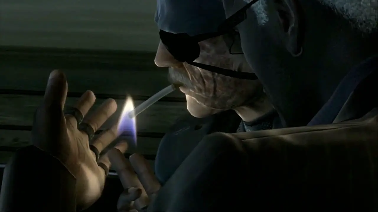 At the end of the briefing of Act 5, just before infiltrating Outer Haven, the team has gathered aboard the Missouri to prepare as best they can for what is essentially a suicide mission. Snake only has one question though. ‘Anybody got a smoke?’, he asks. The response in the room is unanimous; dismissive, and the meeting ends with an awkward silence. Still, Otacon concedes and lights a cigarette for him.