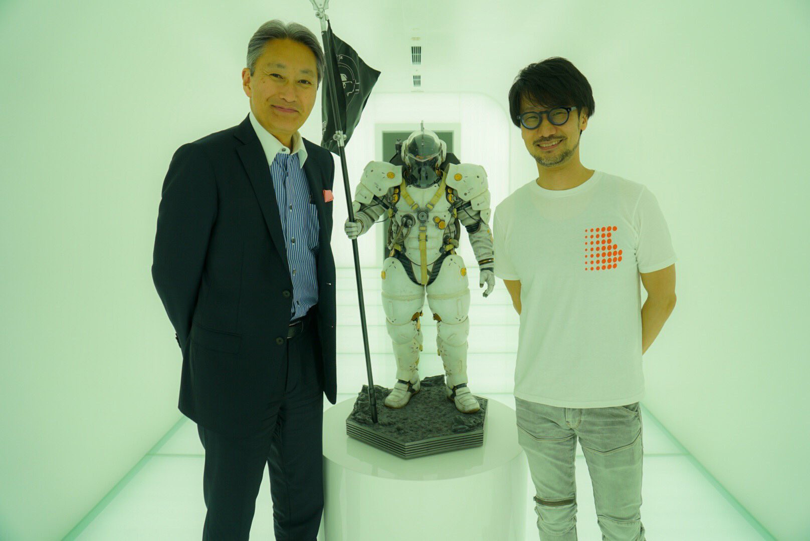 Kaz Hirai was at Kojima Productions yesterday. And Kojima was wearing his SONY shirt again. 🙂